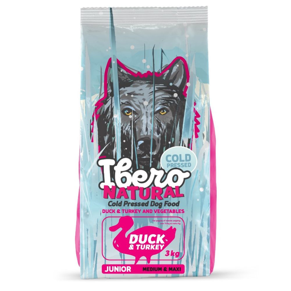 1. Suchą karmę Ibero Cold Press Dog Junior Medium/Large Duck & Turkey 3 kg